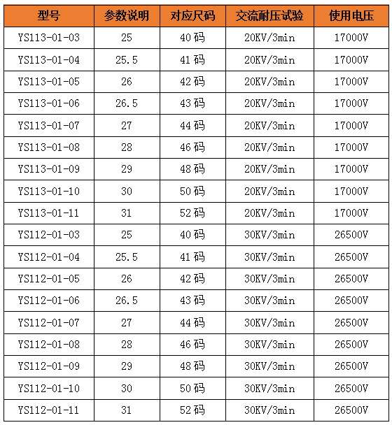 带电作业高帮YS绝缘鞋规格参数: