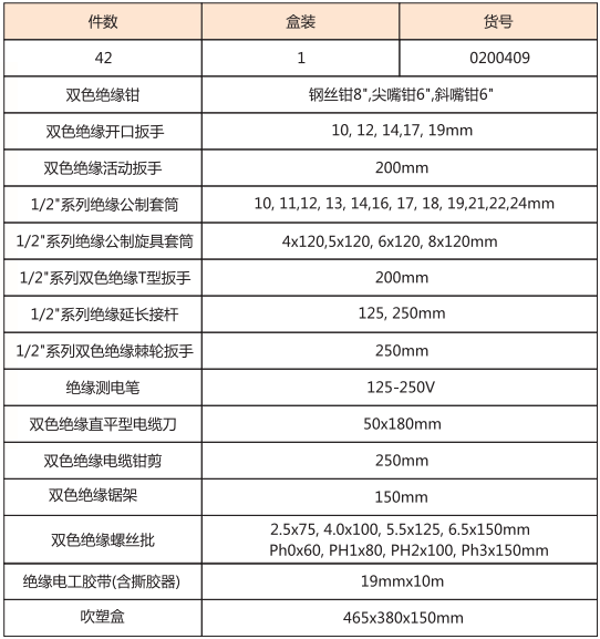 宝和绝缘综合工具42件套装组合VDE电工维修工具套装产品详情: